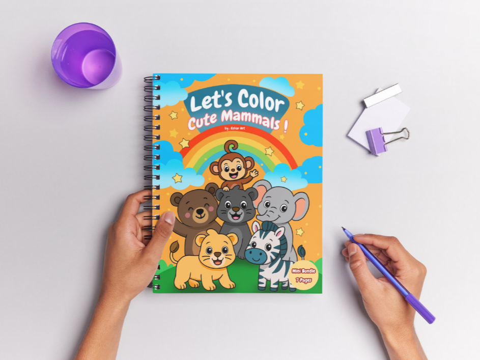 Cute Mammals Coloring Book – 7 Fun Pages + Bonus Activity & Certificate | Printable PDF for Kids